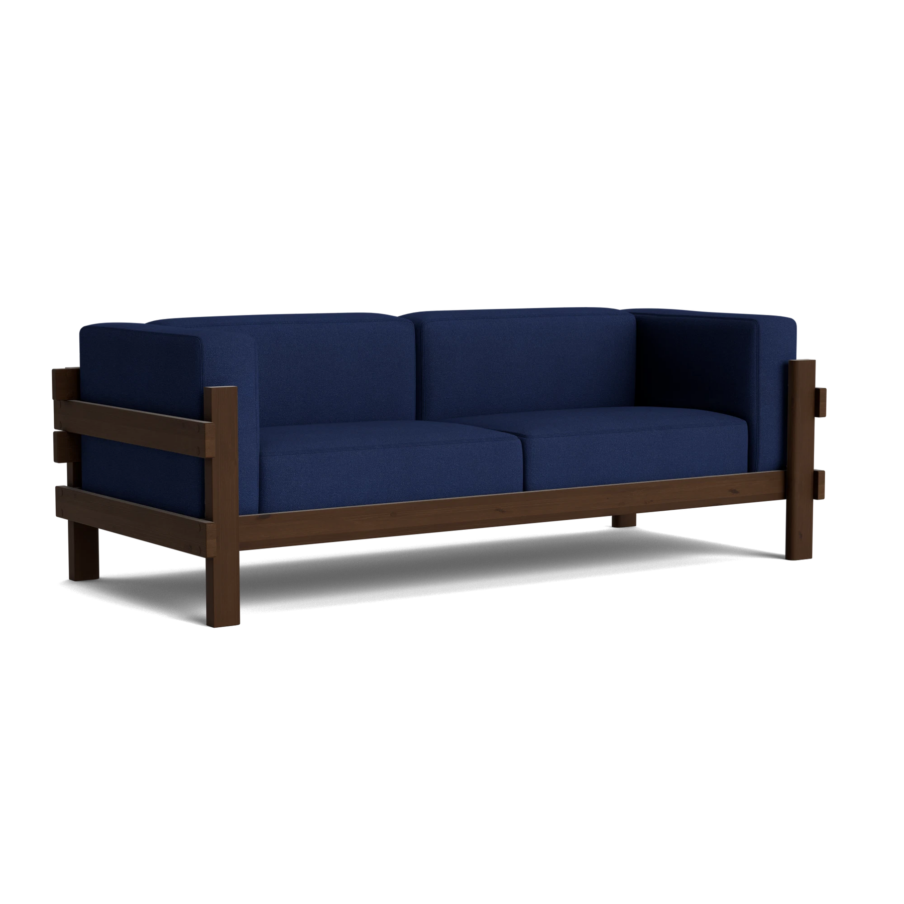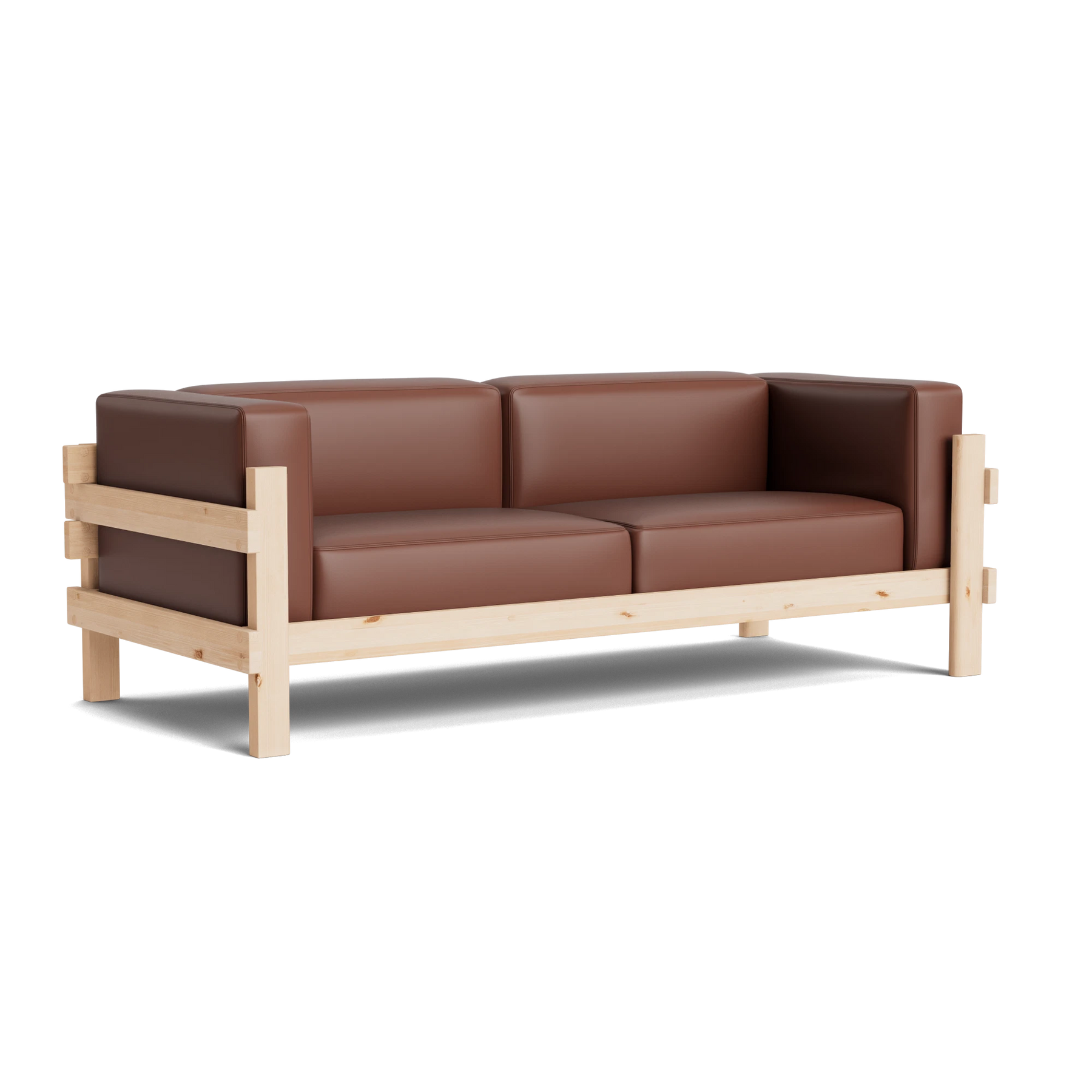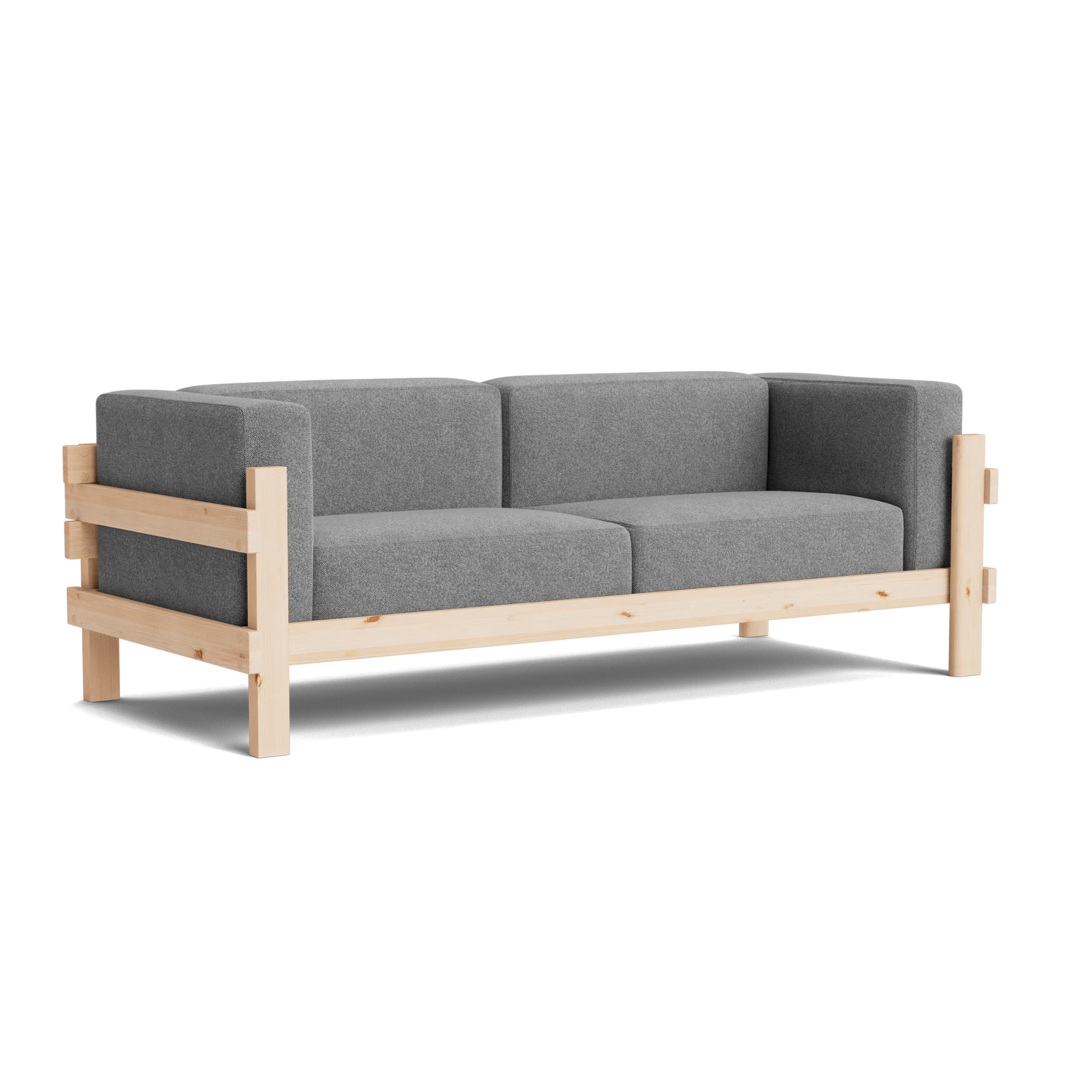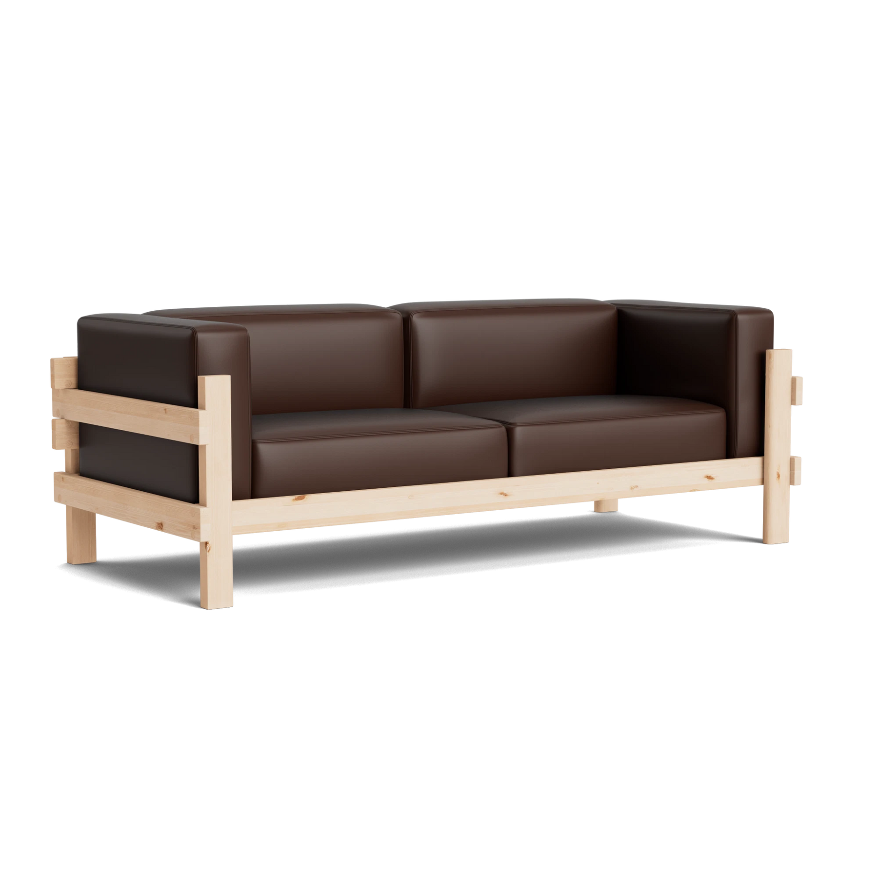 The Kube Sofa is a bold take on mid-century style, designed by Simon Legald. Featuring a sturdy, sculptural pine wood frame, its cubist form is softened with plush, loose cushions on the seat, back, and arms for everyday comfort. Crafted with thick planks that highlight the wood’s natural grain and durability, the frame is built to last and will develop a unique patina over time. The contrast between the clean wooden structure and the soft upholstery creates a balanced, modern look with timeless appeal.