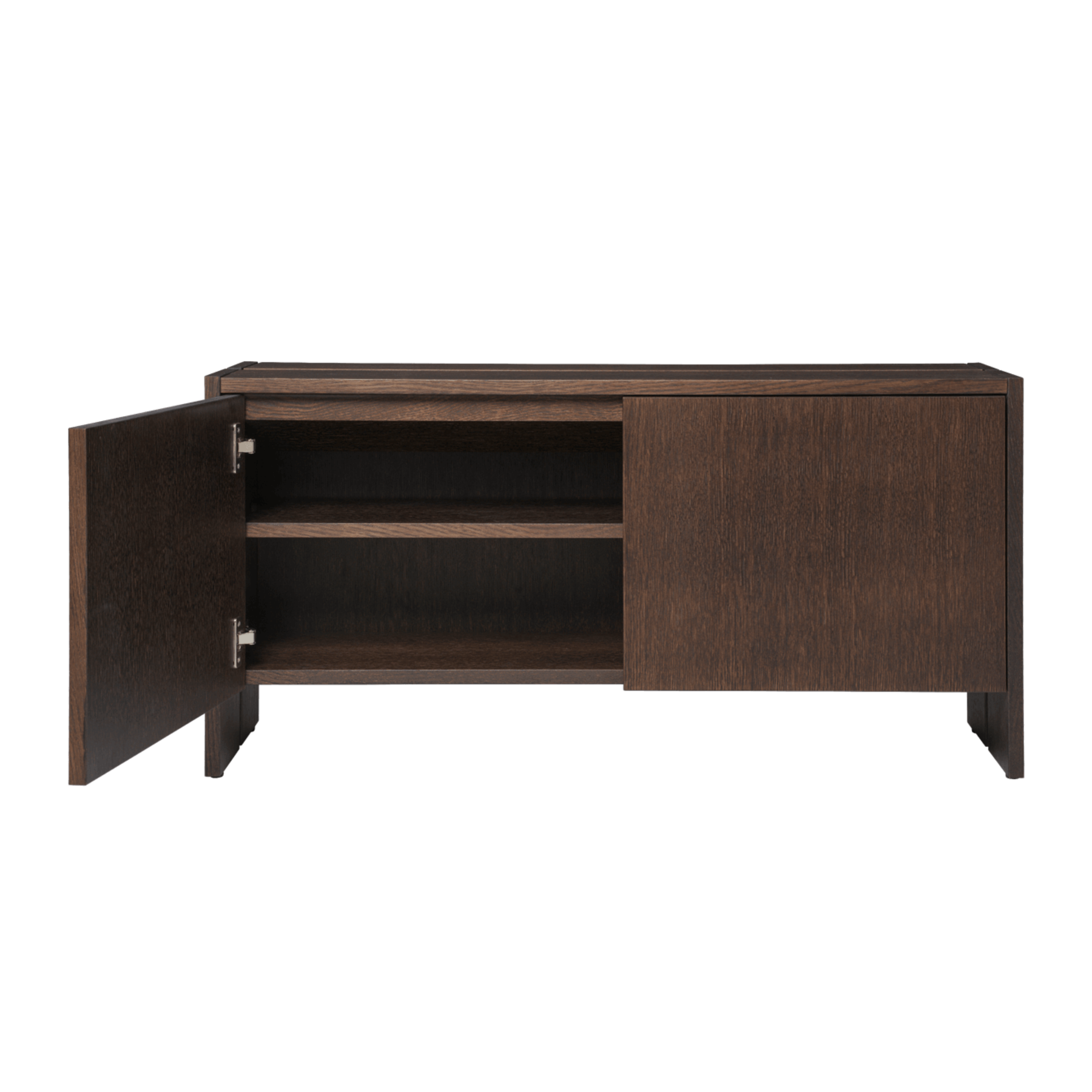 The compact and versatile Parcel Hallway Cabinet is a multi-use storage solution for small spaces, including hallways, narrow rooms and apartments with limited shelving. Crafted from FSC™ Mix-certified oak veneer, the cabinet features hinged shelves that can be angled for shoe storage. A top compartment provides a dedicated place for small items such as keys.