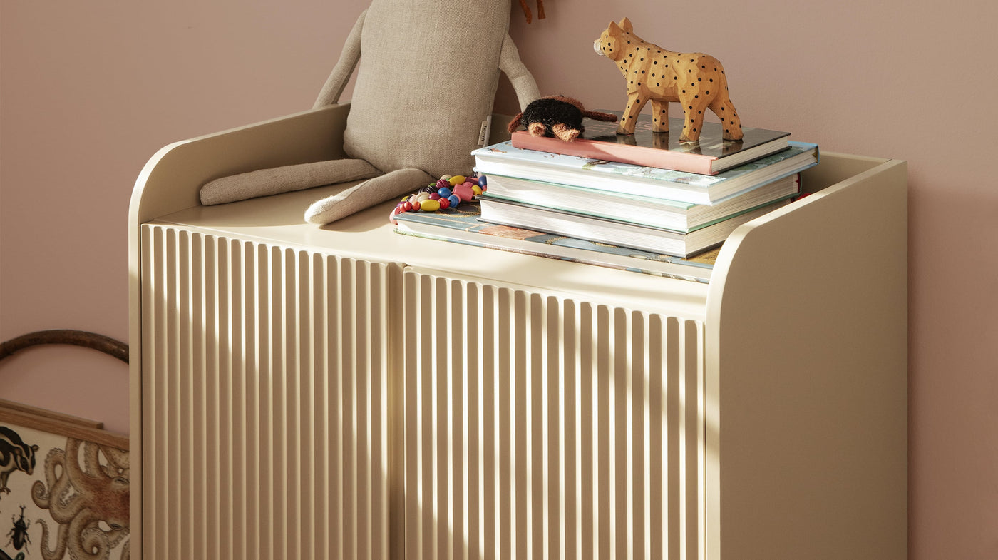 The name Sill stems from the French sillon, which means carved grooves. In addition to the scalloped doors, rounded corners make the design of the Sill cupboard playful and distinctive.