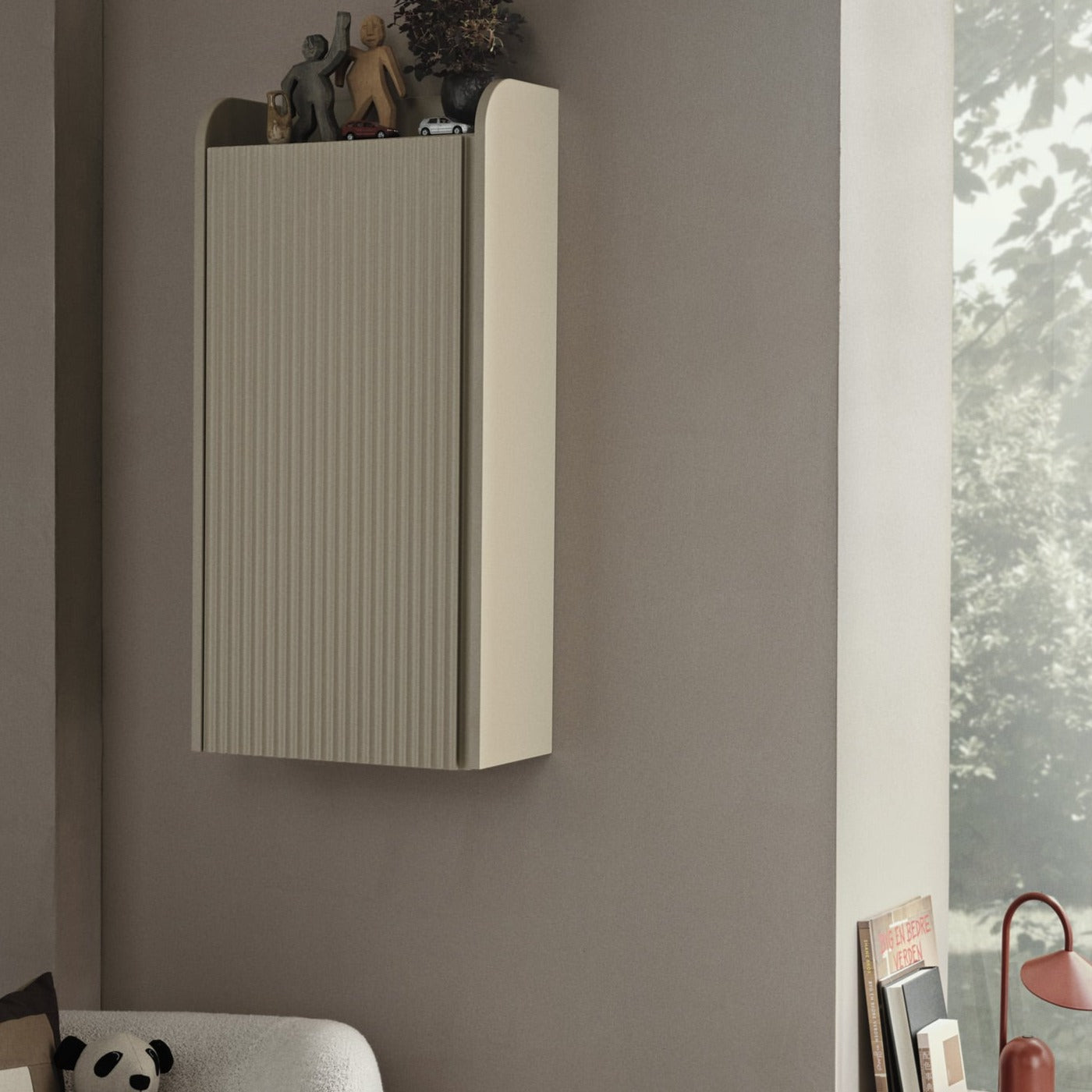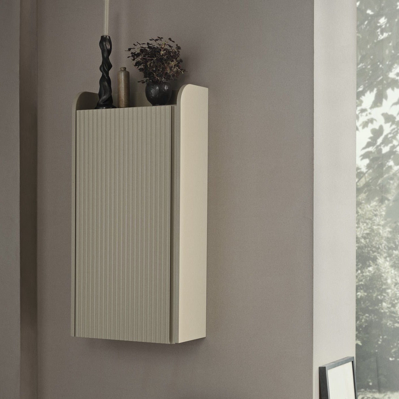 The Ferm Living Sill Wall Cabinet is a decorative and multi-functional storage solution. The name Sill stems from the French sillon, meaning carved grooves, which adorn the doors of this wall cabinet.