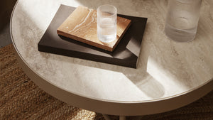 This versatile Travertine table by Ferm Living is a functional and beautiful addition to your living space.