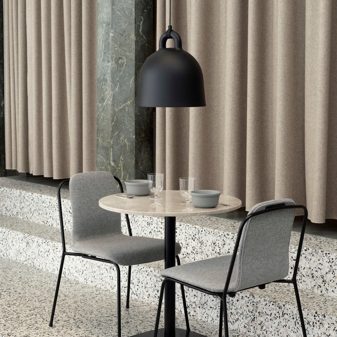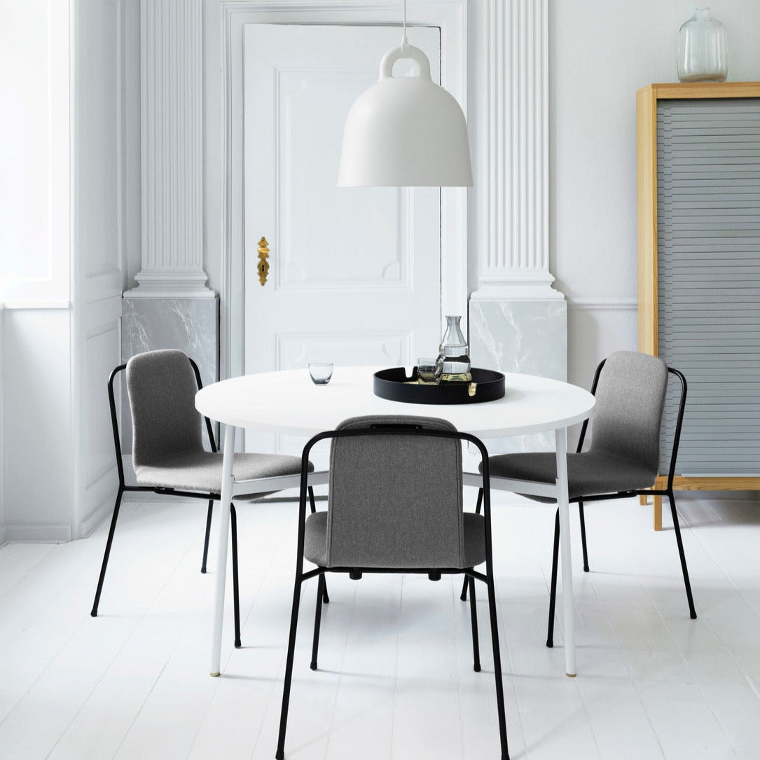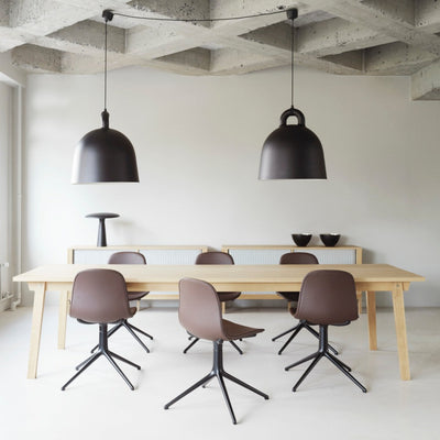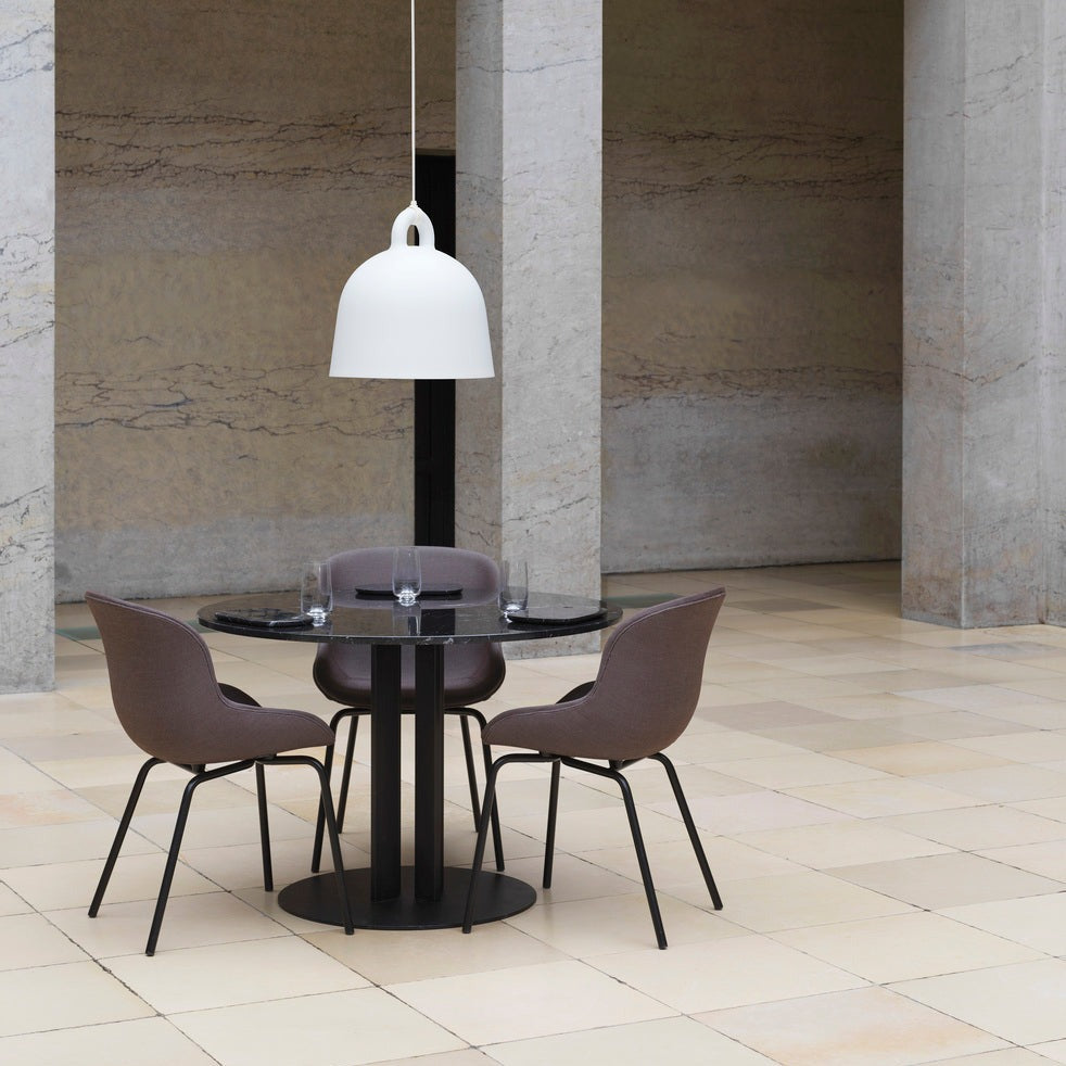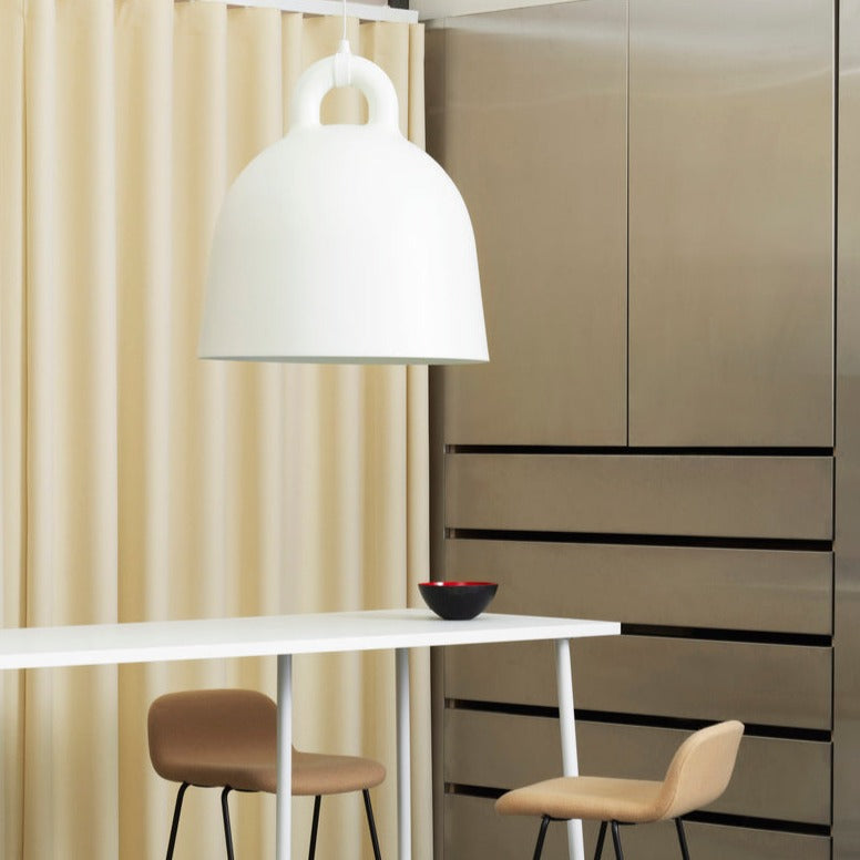 The Bell Pendant Lamp is a Normann Copenhagen timeless classic, inspired by the iconic shape of a bell. With its industrial yet soft look, this ceiling light will fit beautifully in the kitchen, living room, bedroom or hallway. Hang a mix of sizes in a cluster, use a large Bell over the dining table, or hang smaller sizes in pairs in the kitchen.