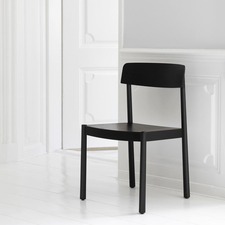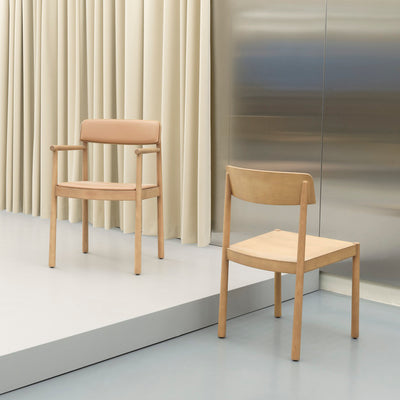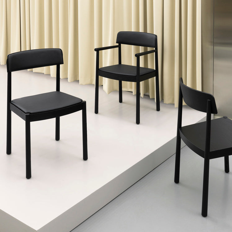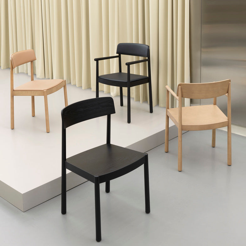 The Timb chair by Normann Copenhagen has a simple wooden structure with a richness of detail in the contrast between its curves and sharp lines. Its artisan traditions are also visible in its elegant dowel joints, which make it possible to manufacture the chair without the need for screws and allow the wood itself to be the focal point of the design.