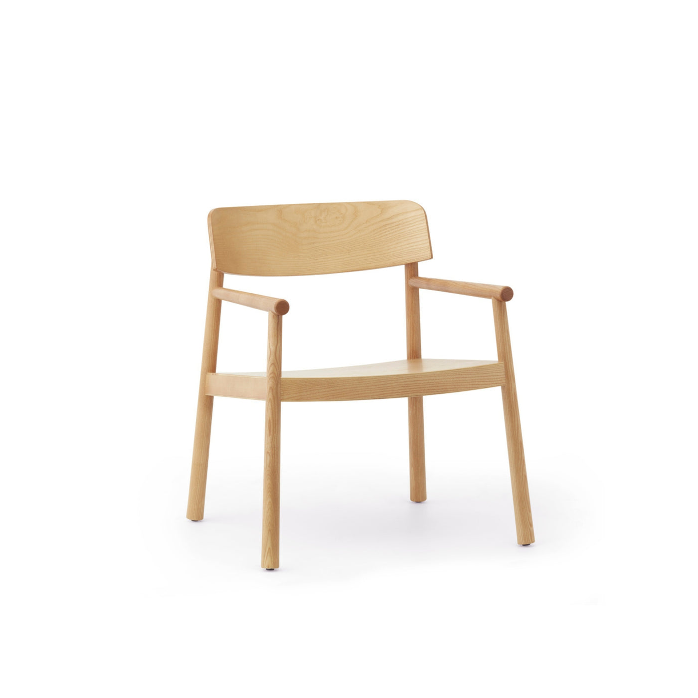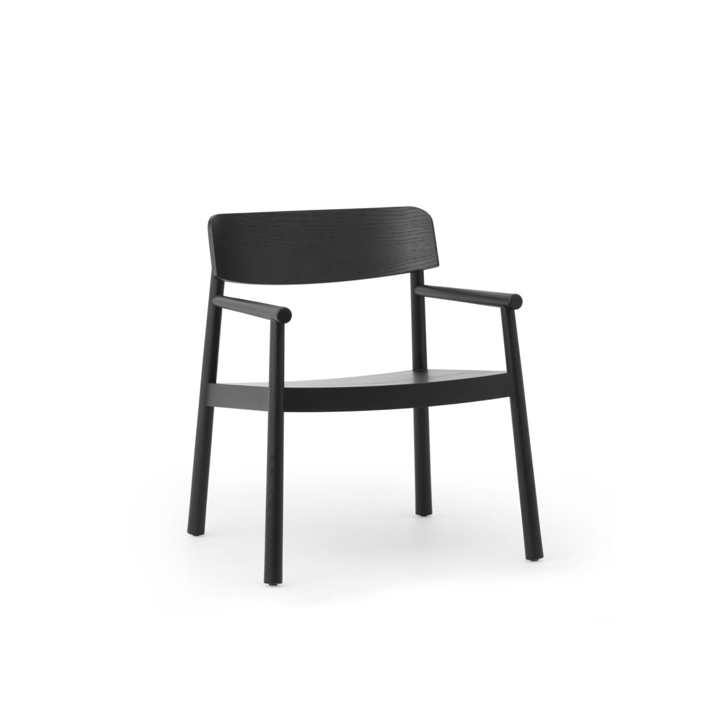 The Timb Lounge Chair has generous proportions, with a comfortable wide seat, slightly curved backrest and slender armrests that invite you to relax for as long as your heart desires. Crafted using PEFC-certified ash and lacquered with a black or golden-brown tone, the lounge chair is also available with colour-coordinated leather upholstery from Sørensen for the seat and backrest to provide increased comfort and a subtle, tactile finish.